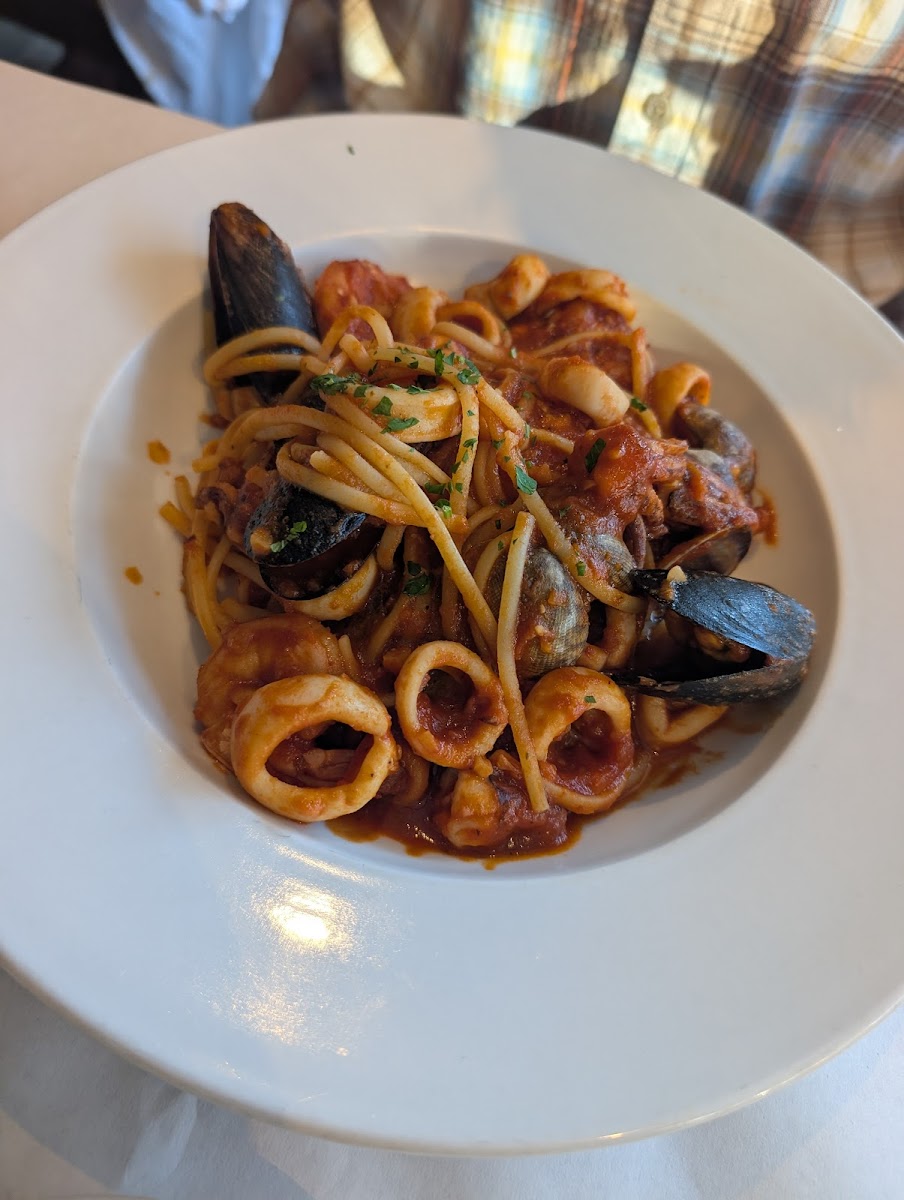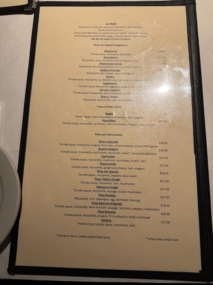 As you peruse the menu, you'll discover a delicious array of options that capture the essence of Italian cooking. For a starter, don't miss the Bucatini all’Amatriciana, a satisfying dish of pasta enveloped in a spicy tomato sauce, harmonized with savory Italian bacon and topped with rich parmigiano cheese. If you're in the mood for something indulgent, opt for the Gnocchetti Formaggi, homemade potato and spinach dumplings bathed in a creamy bleu cheese sauce—simply irresistible, though be warned, it's not available gluten or dairy-free.